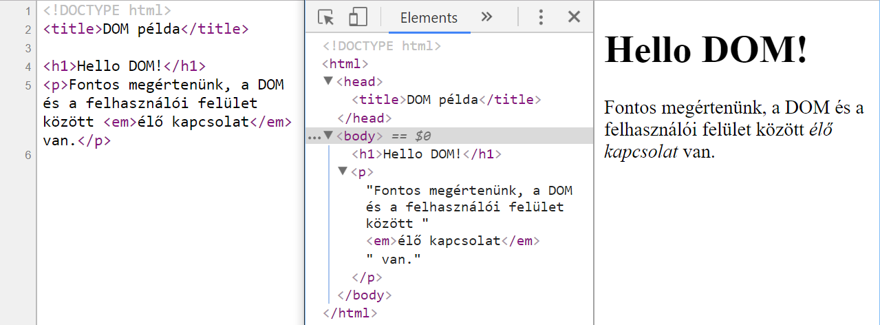 nodeType === 1: elemnodeType === 3: szöveges csomópontparent.appendChild(elem): beszúrásparent.insertBefore(elem, ref): beszúrásparent.removeChild(elem): törlésparent.replaceChild(elem, oldElem): csereelem létezik, akkor mozgatásparent.contains(element): tartalmazza-e<ul>